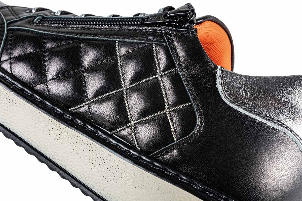 The flexible biomechanical sole facilitates the rolling of the step and distributes pressure peaks