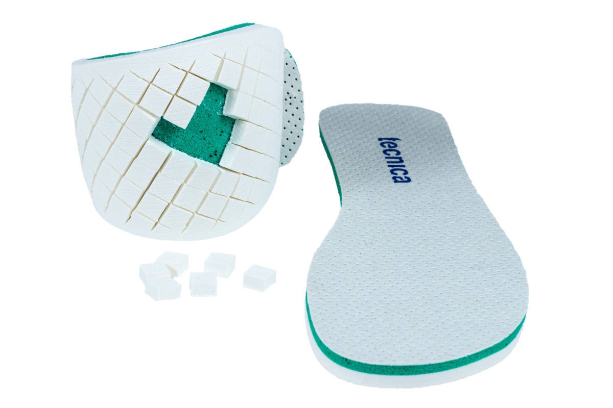 The Elderly and Rehabilitation Line is designed for the insertion of the innovative S-CLOUD FISIO insole. It allows the removal of the plugs in the lower part thanks to the pre-incision of the 6 mm EVAFORM on the entire surface of the insole, the orthopedic technician will identify the plugs to be removed to allow the immediate discharge of pressure in the ulcerated area or at risk of ulceration, allowing us to create a discharge area of the necessary size and in the precise point. The 3 mm self-modeling memory foam layer inside the insole reduces the forces exerted by the edges of the discharged area on the plantar area, redistributing body weight over a larger surface thus avoiding pressure peaks.
